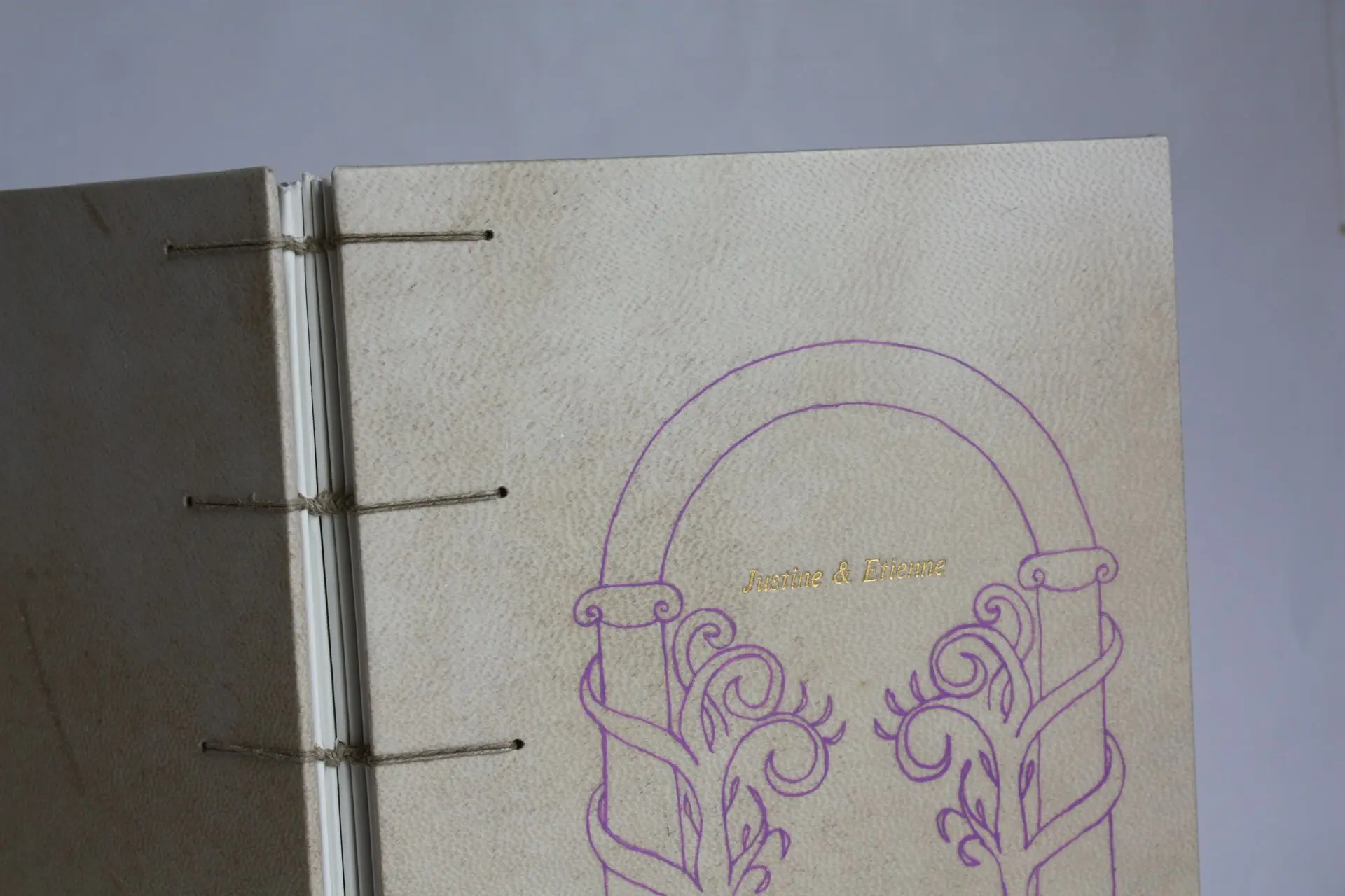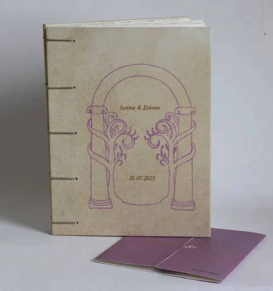 - Reliure artisanale : chaque livre d’or est réalisé selon les techniques artisanales, garantissant robustesse et longévité.